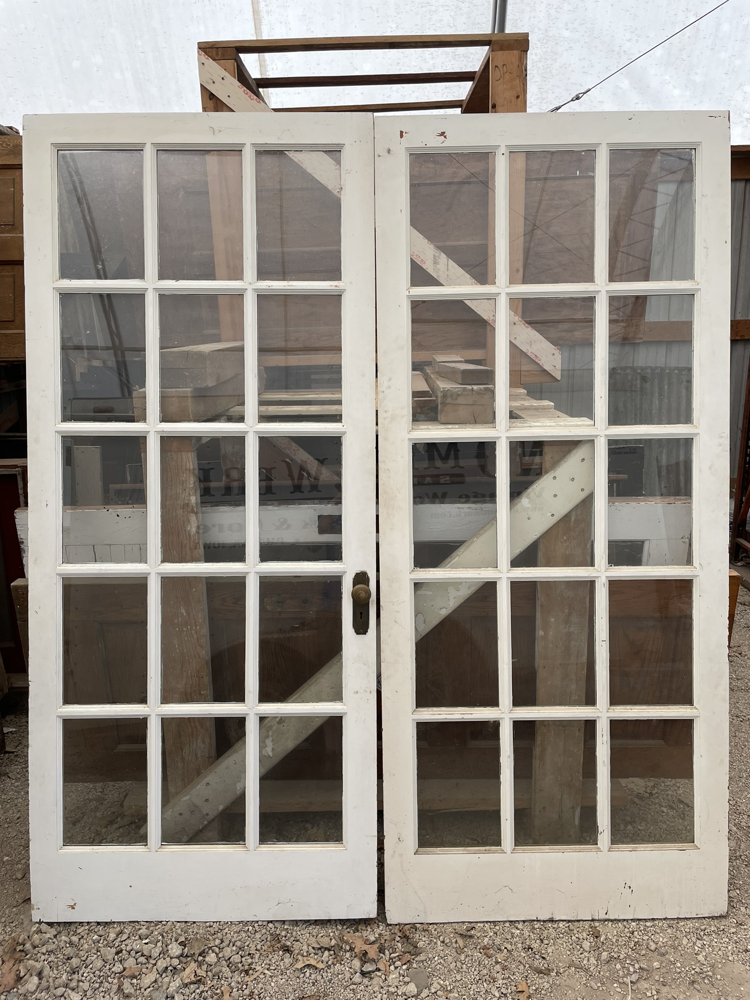 15-pane French doors with original hardware, in excellent condition, and in a great size. Each door is 35 3/4″ w x 83″ h.